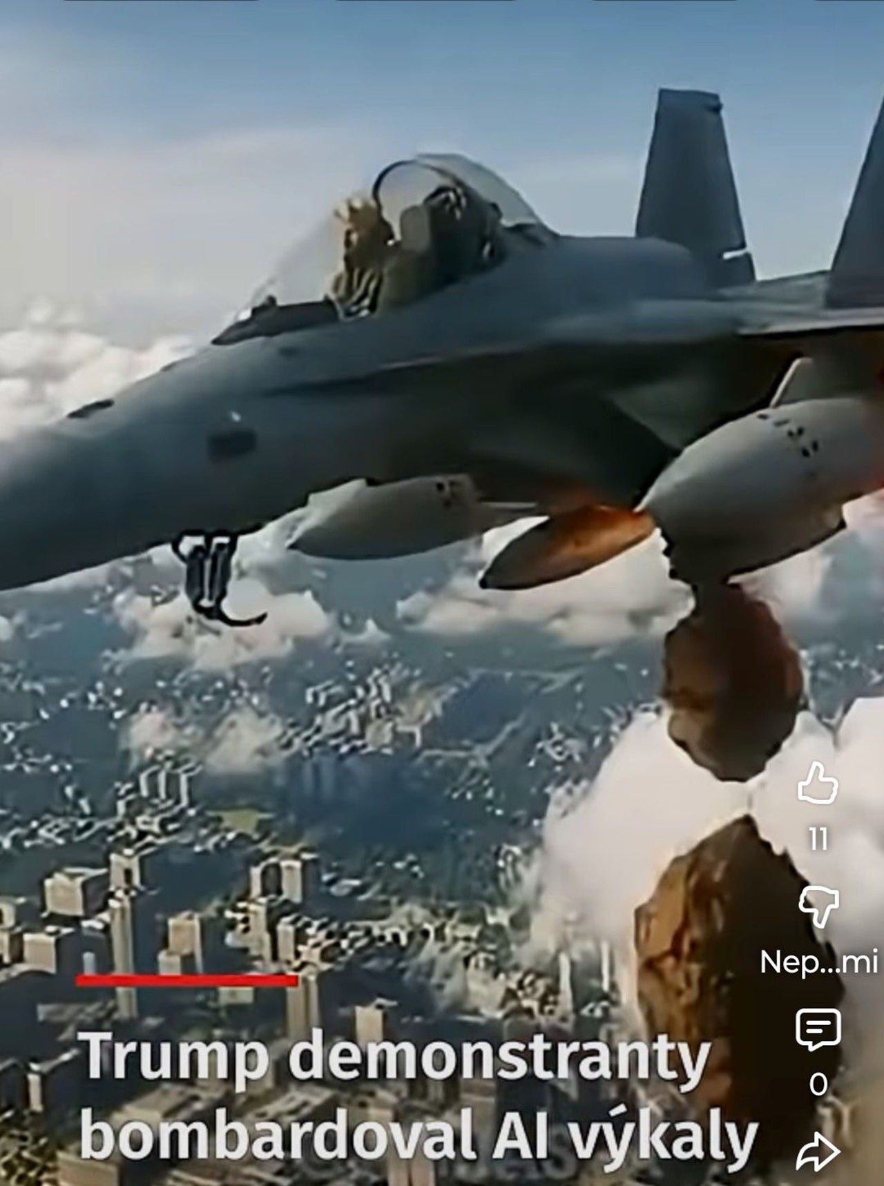 V tom videu lieta s kráľovskou korunou na hlave v stíhačke a zhadzuje na protestujúcich občanov svojho štátu bomby s hov*ami( výkalmi).