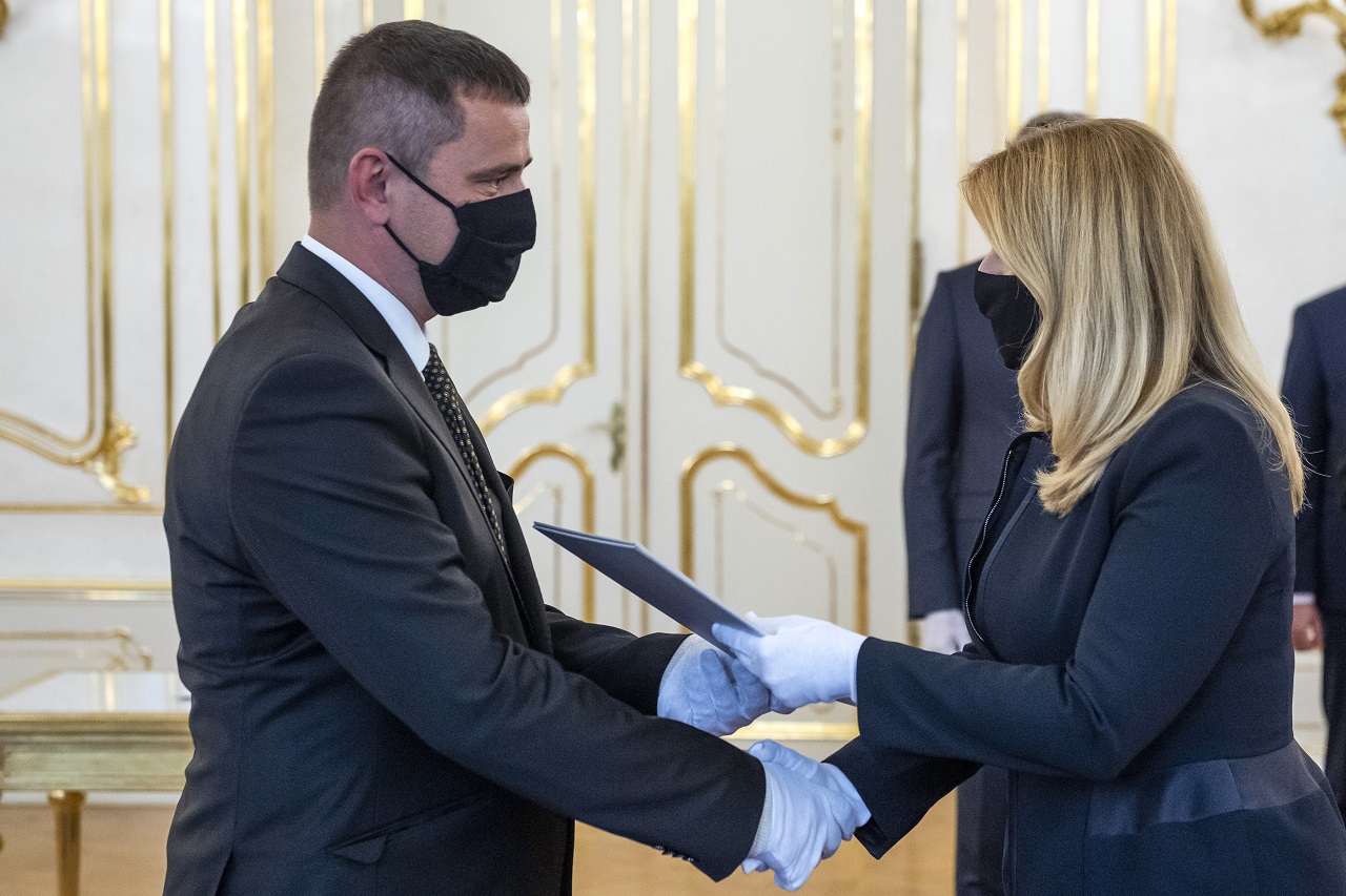 Na snímke zľava Robert Šorl počas jeho vymenovania za sudcu Ústavného súdu SR prezidentkou SR Zuzanou Čaputovou