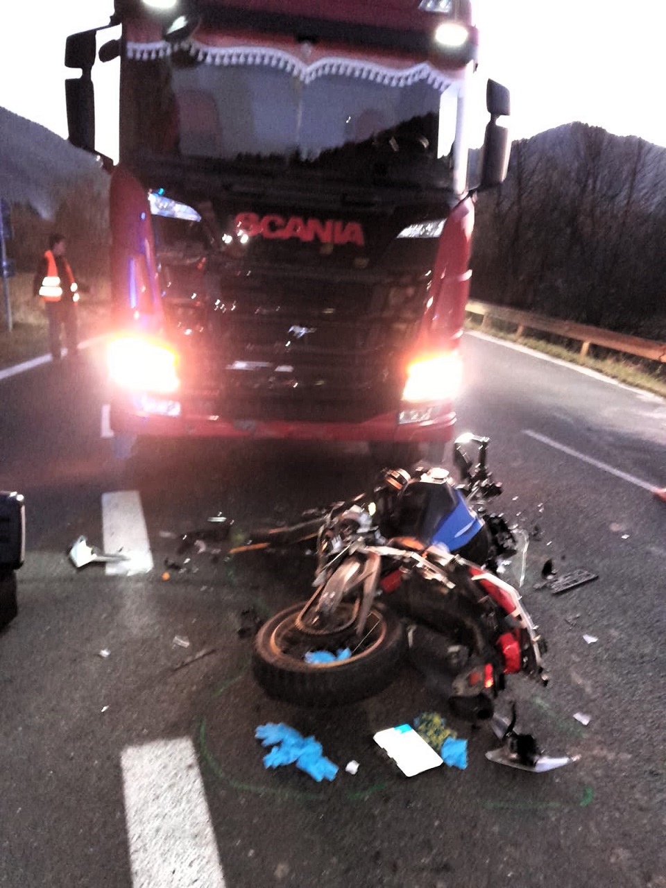Pri zrážke s kamiónom pri Hybiach utrpel motocyklista vážny úraz hlavy