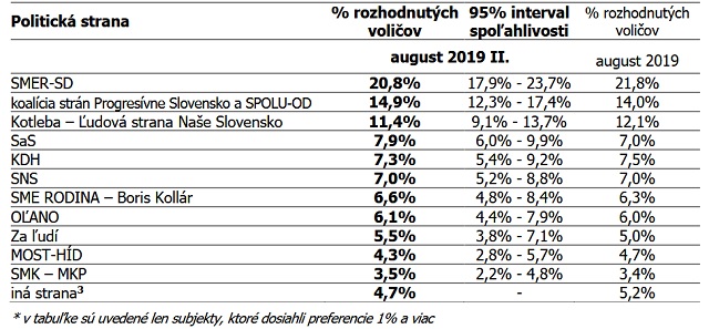 Mimoparlamentné KDH sa dostalo na piate miesto, oslovili by 7,3 percenta voličov. Vyplýva to z reprezentatívneho prieskumu verejnej mienky, ktorý realizovala agentúra Focus v dňoch 13. až 19. augusta na vzorke 1 010 respondentov vo veku nad 18 rokov. Výsledky agentúre SITA zaslal riaditeľ agentúry Martin Slosiarik.