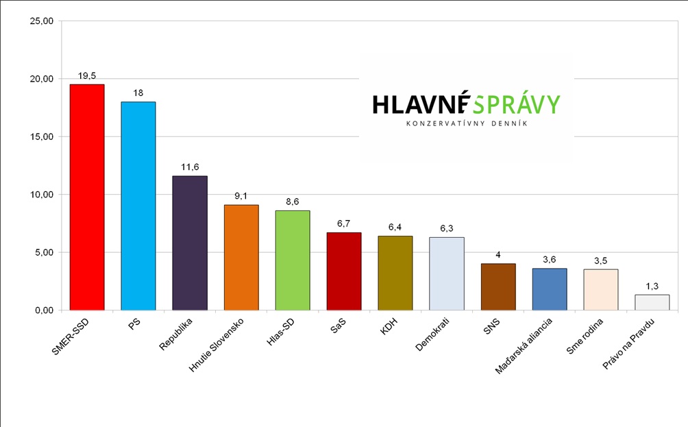 Z výsledkov prieskumu vyplýva, že vládny SMER-SSD by získal 19,5%. V poradí druhé by bolo Progresívne Slovensko s 18%. Na tretie miesto (11%) sa vyšplhala Republika, mimoparlamentné hnutie, ktoré má však silné zastúpenie v regiónoch a aj v Európskom parlamente (Milan Uhrík a Milan Mazurek, frakcia ESN).