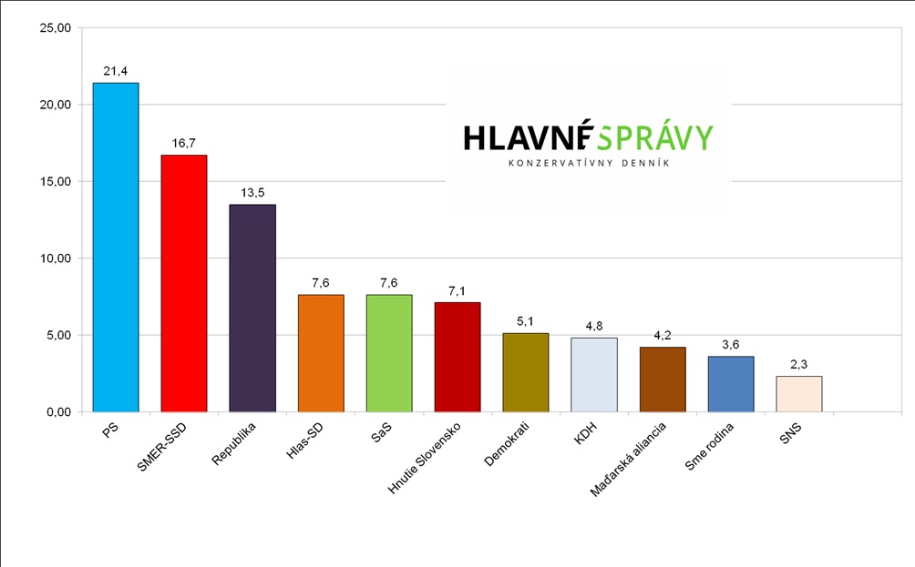 Do parlamentu by sa tak celkovo dostalo sedem strán. Najviac mandátov – 41, by získalo Progresívne Slovensko. Smer-SD by získal 32 mandátov, Republika 26, Hlas-SD a SaS by obsadili zhodne po 14 kresiel. Hnutie Slovensko by v Národnej rade SR malo 13 poslancov a Demokrati desať.