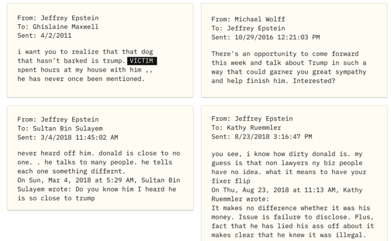 Niekoľko Epsteinových e-mailov. / Foto: Screenshot New York Times