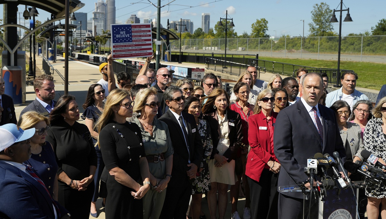 Na snímke predseda Republikánskej strany Severnej Karolíny Jason Simmons hovorí o nedávnej smrti Iryny Zarutskej, ktorá bola zabitá nožom, počas tlačovej konferencie v stredu 10. septembra 2025 v Charlotte v Severnej Karolíne / Foto: TASR/AP-Chris Carlson