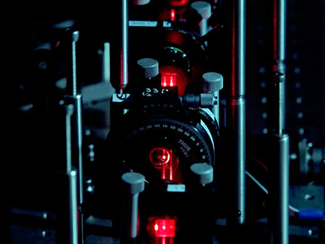 Na snímke stredná časť optického systému, ktorý experimentálne vyvinul sedemčlenný tím, ktorý viedol Anton Zeilinger / Foto: TASR-IQOQI, Jacqueline Godany