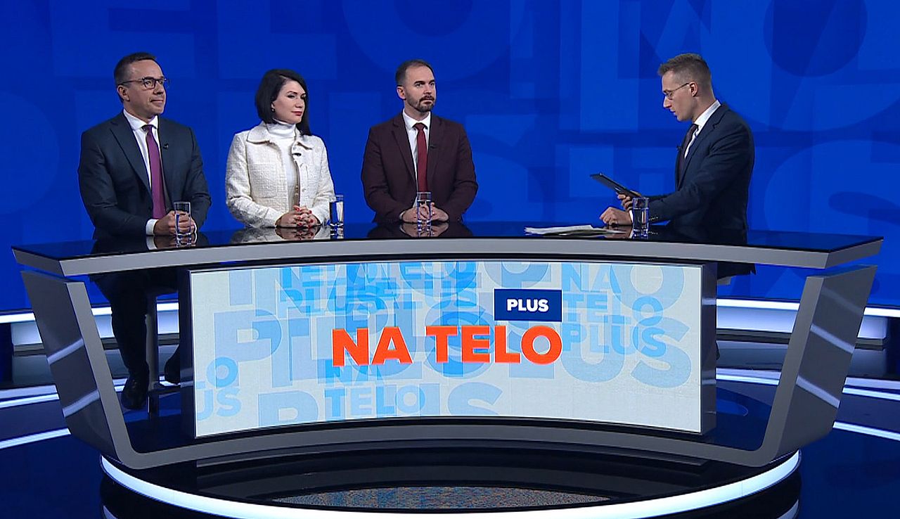 Zľava: Erik Tomáš (Hlas SD), Jana Bittó Cigániková (SaS) a Michal Šipoš (OĽANO) v relácii Na telo plus