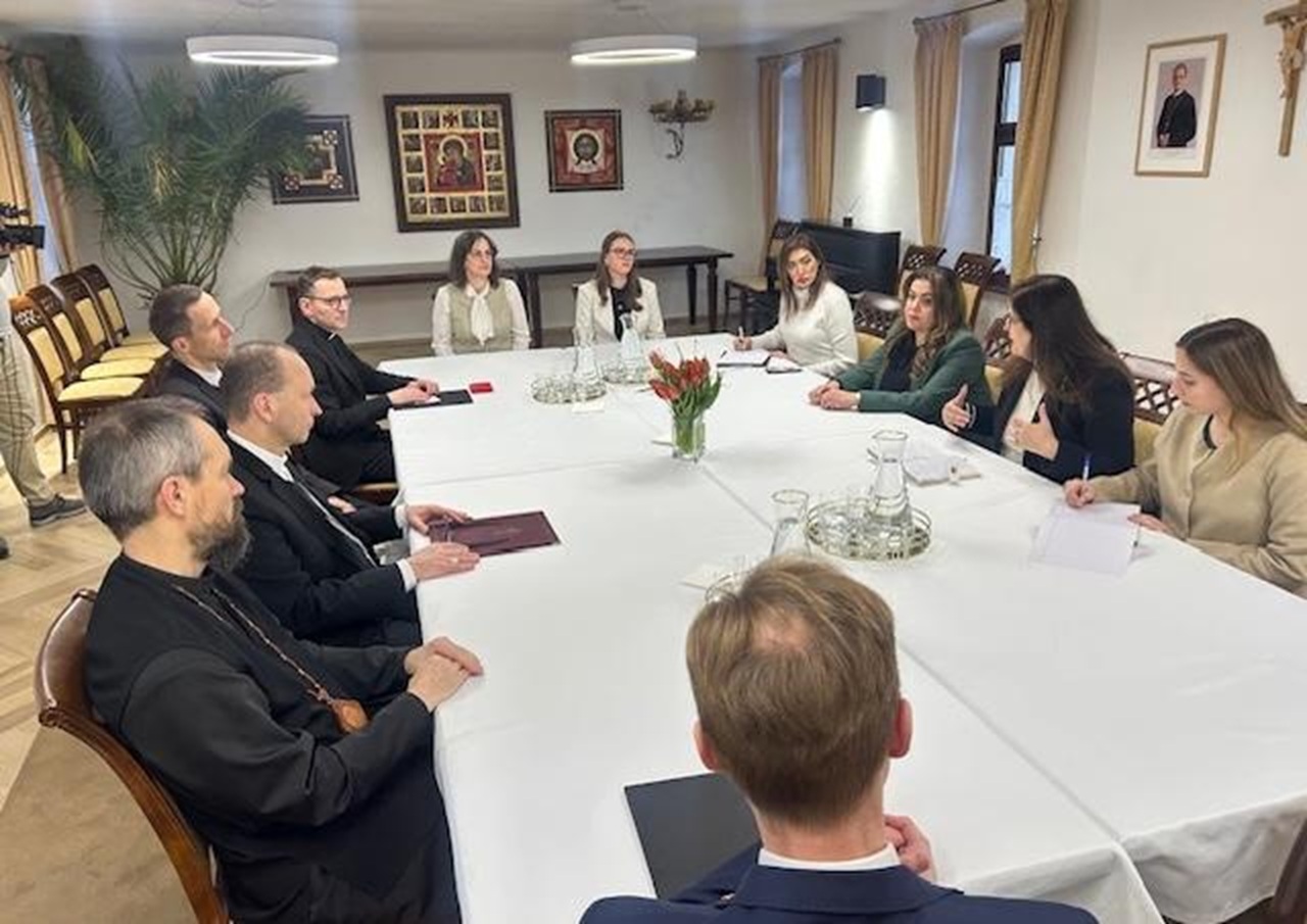 Mons. Jozef Haľko v úvode vyjadriť radosť zo záujmu Dr. Aghabekianovej, ministerky zahraničných vecí, stretnúť sa s predstaviteľmi Rímskokatolíckej a Gréckokatolíckej cirkvi na Slovensku. Poukázal na význam projektov Slovenskej katolíckej charity a Pápežskej nadácie ACN – Pomoc trpiacej Cirkvi, zameraných na pomoc ľuďom.