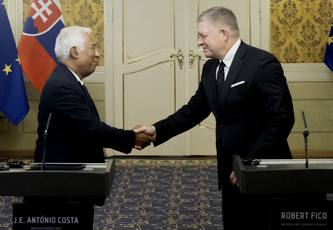 Na snímke sprava predseda vlády SR Robert Fico a predseda Európskej rady António Costa / Foto: TASR – Martin Baumann