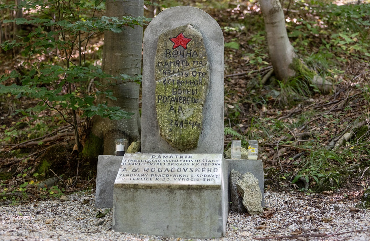 Na snímke pomník A.B. Rogačevského, ktorý sa nachádza pri novej replike partizánskeho bunkra nad obcou Kunerad v okrese Žilina