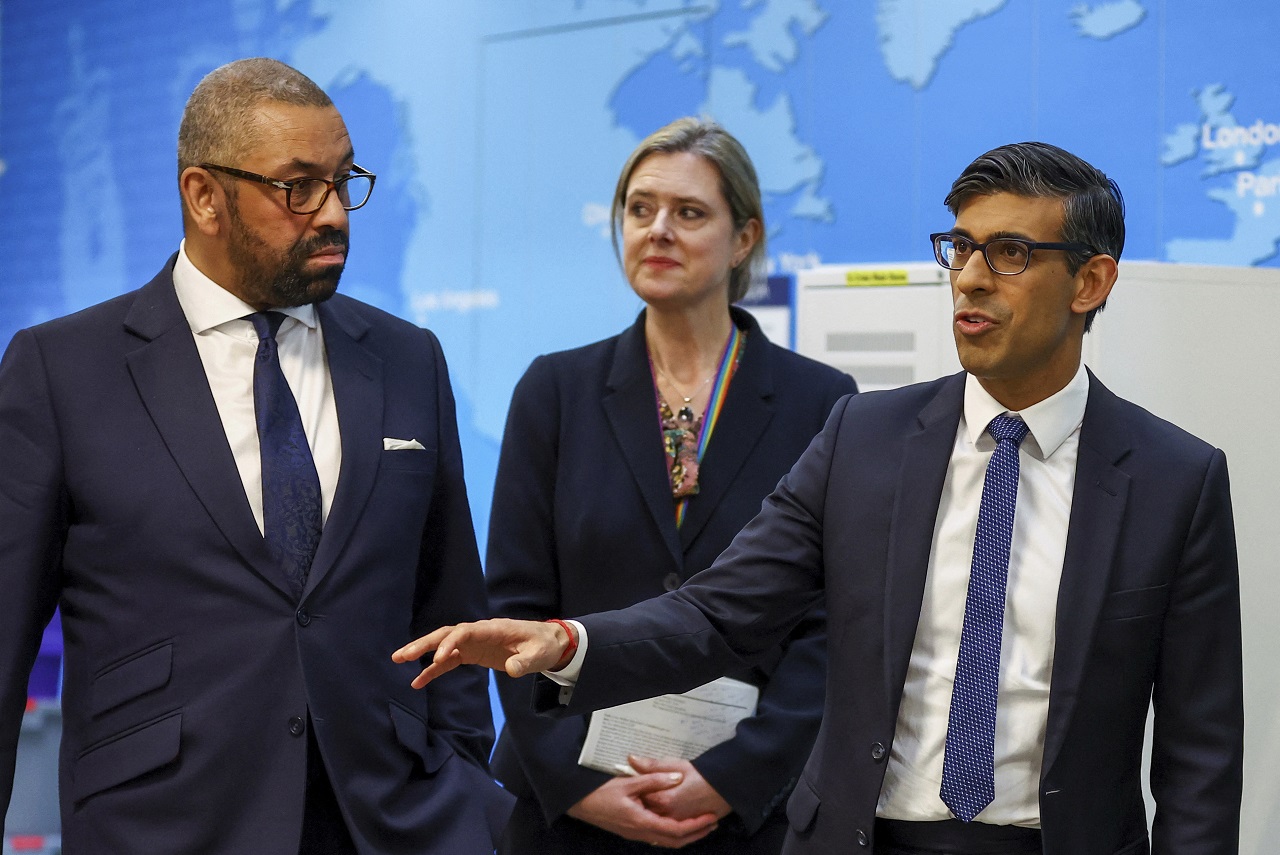 Na snímke britský premiér Rishi Sunak (vpravo) a britský minister zahraničných vecí James Cleverly (vľavo)