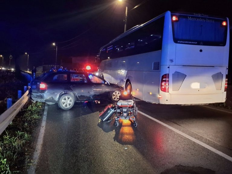 Po zrážke autobusu a dvoch áut odviezli do nemocnice na vyšetrenie tehotnú pasažierku