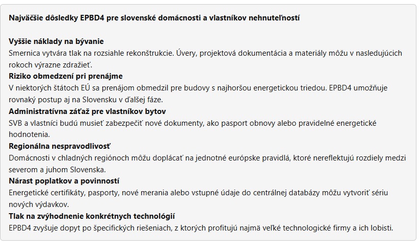 Transpozícia európskej smernice EPBD4 je na Slovensku v plnom prúde a prístup ministerstva potvrdzuje mnohé z vyslovených obáv. Aká budúcnosť…