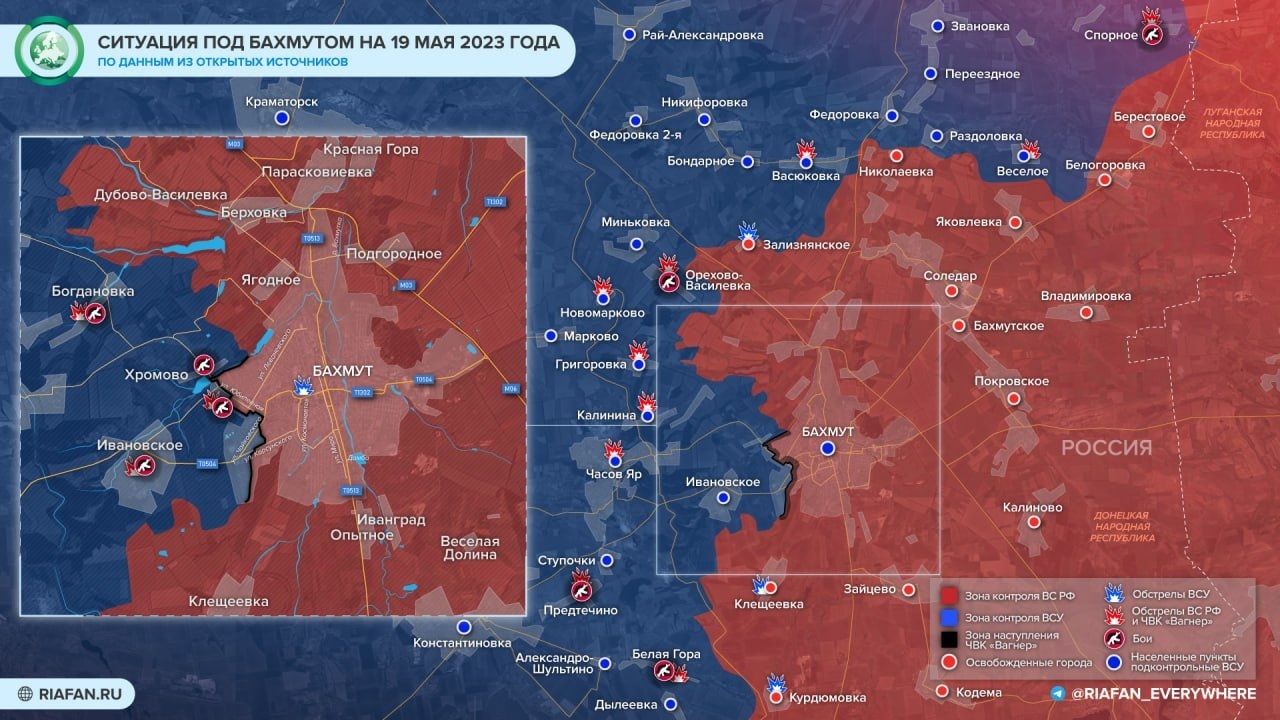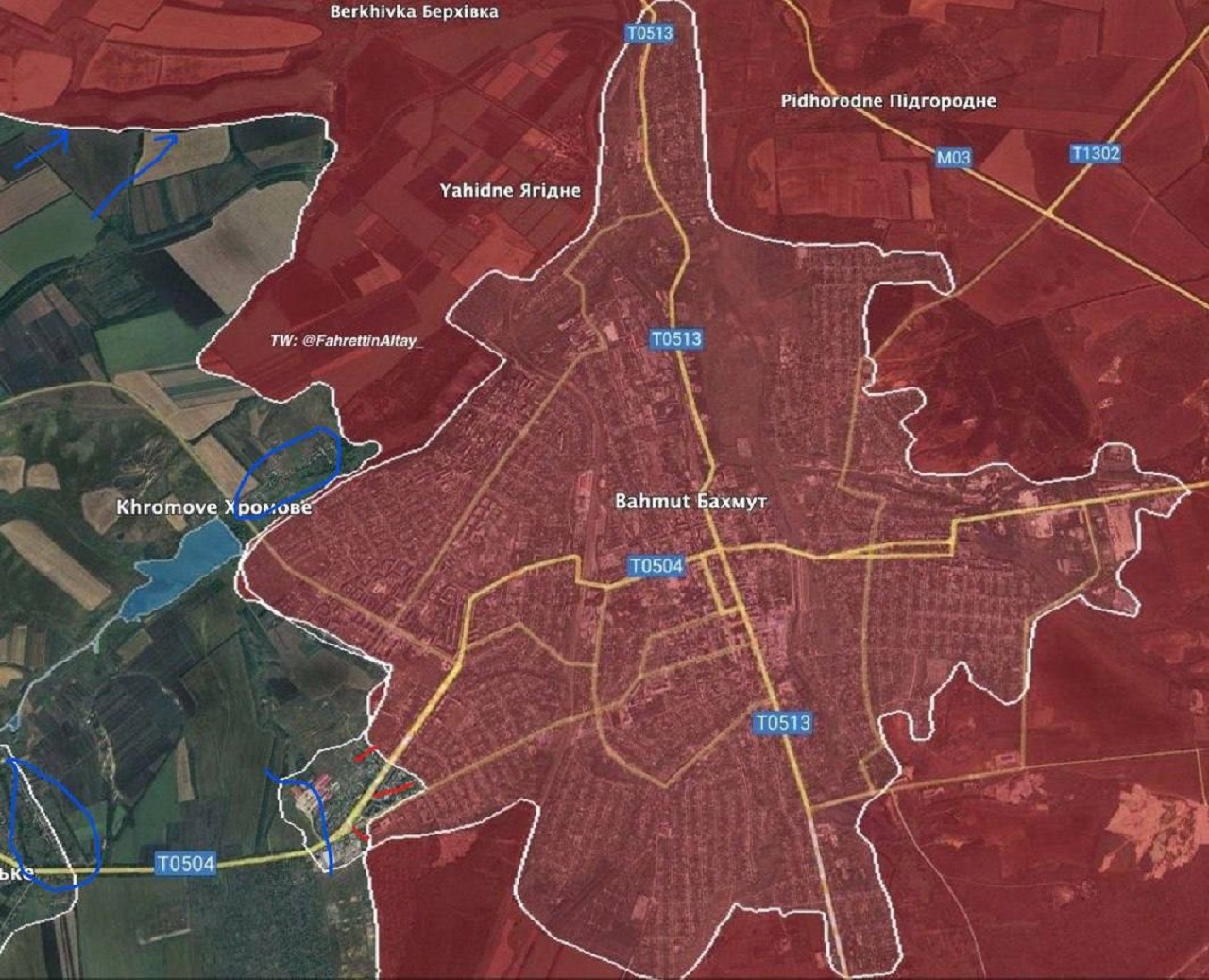 Viaceré ruské telegramové kanály zverejňujú mapu Bachmutu, podľa ktorej Ukrajina drží juhozápadný okraj mesta (kde sa lietadlo nachádzalo).