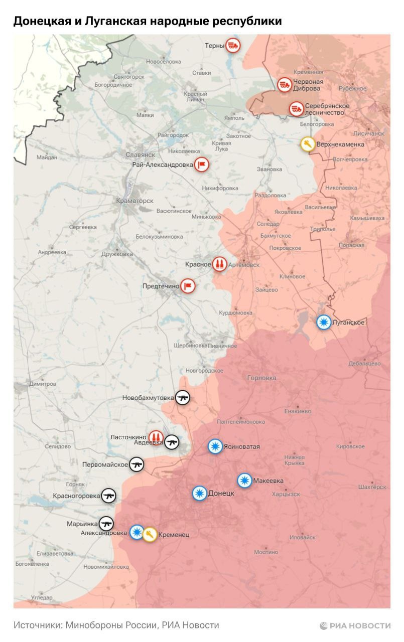 Pri Seversku nepriateľ útočil pri Belogorovke, pri Bachmute – v smere na Bielu Horu. Pri Donecku – v smere na Marinku.