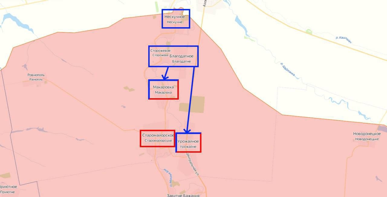 Okrem obsadenia Blagotatnovo a Neskučnovo sa nepriateľovi podarilo získať oporu na severných predmestiach Makarovky a Urožajnovo, ktoré nasledujú za nimi.