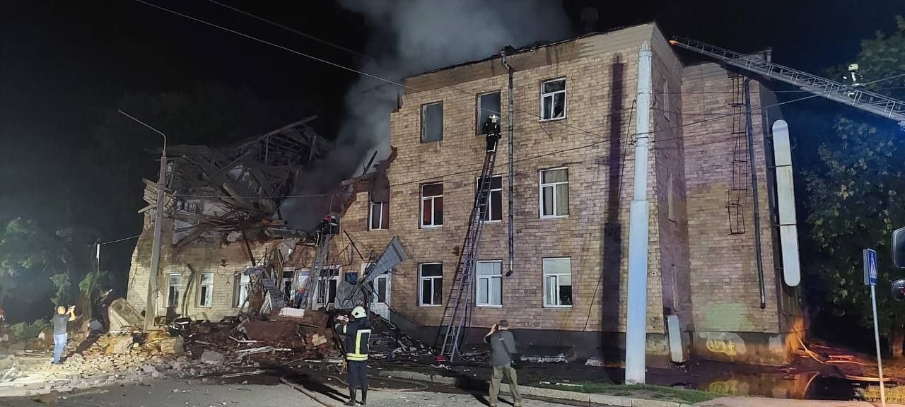 Jedno bezpilotné lietadlo zasiahlo trojposchodovú budovu vzdelávacej inštitúcie v Saltovskom okrese. Došlo k čiastočnému zničeniu konštrukcií 2., 3. poschodia, stropu a strechy. Vznikol aj požiar na ploche približne 200 metrov štvorcových.