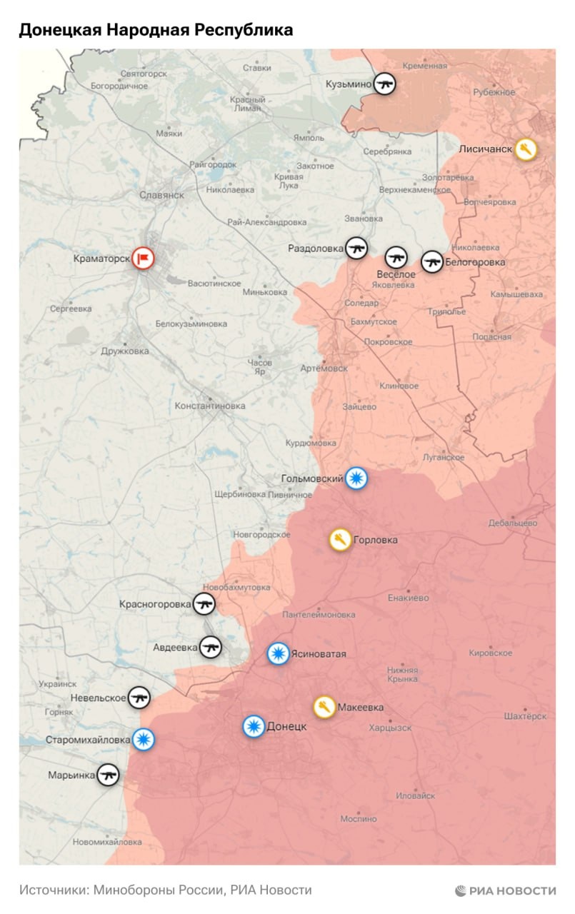 Pravdepodobne ide o zásahy na objekty ukrajinských ozbrojených síl v blízkosti dielní závodu Energomašpešťal a Kramatorského závodu ťažkých strojov a zariadení. Pred niekoľkými týždňami tam ukrajinské sily začali zhromažďovať značné množstvo munície a vojenského vybavenia.