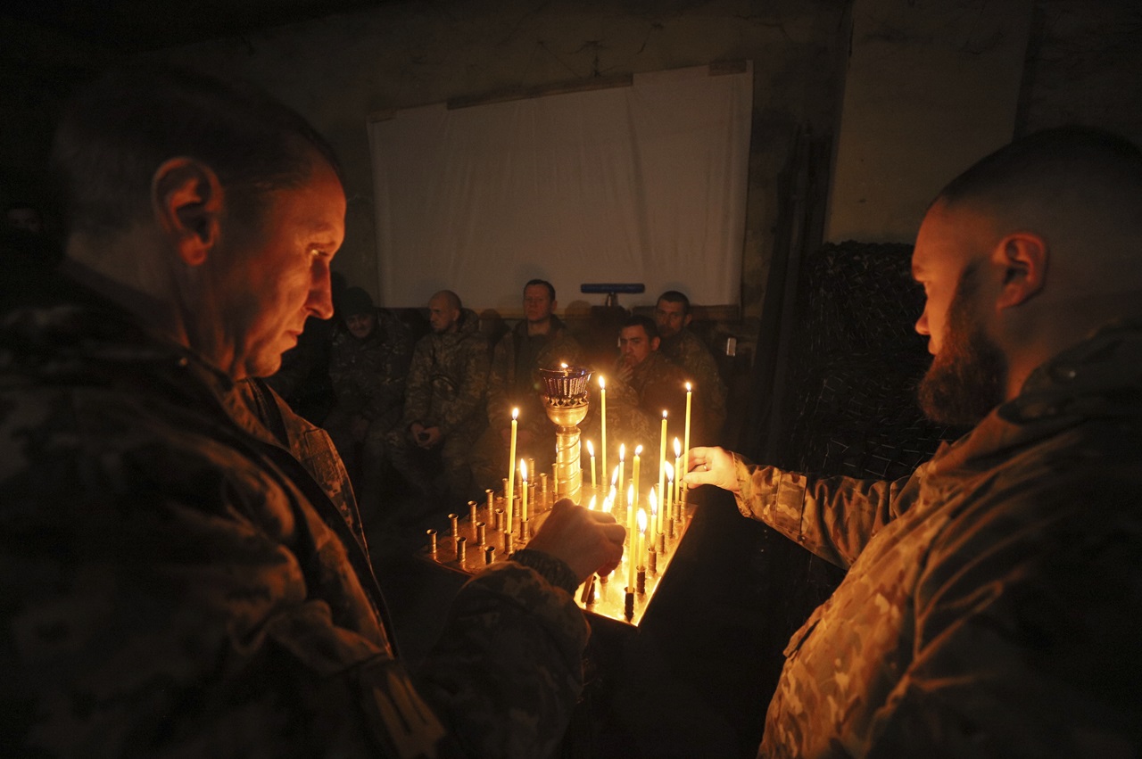 Ukrajinská vojaci na bohoslužbe pred Vianocami