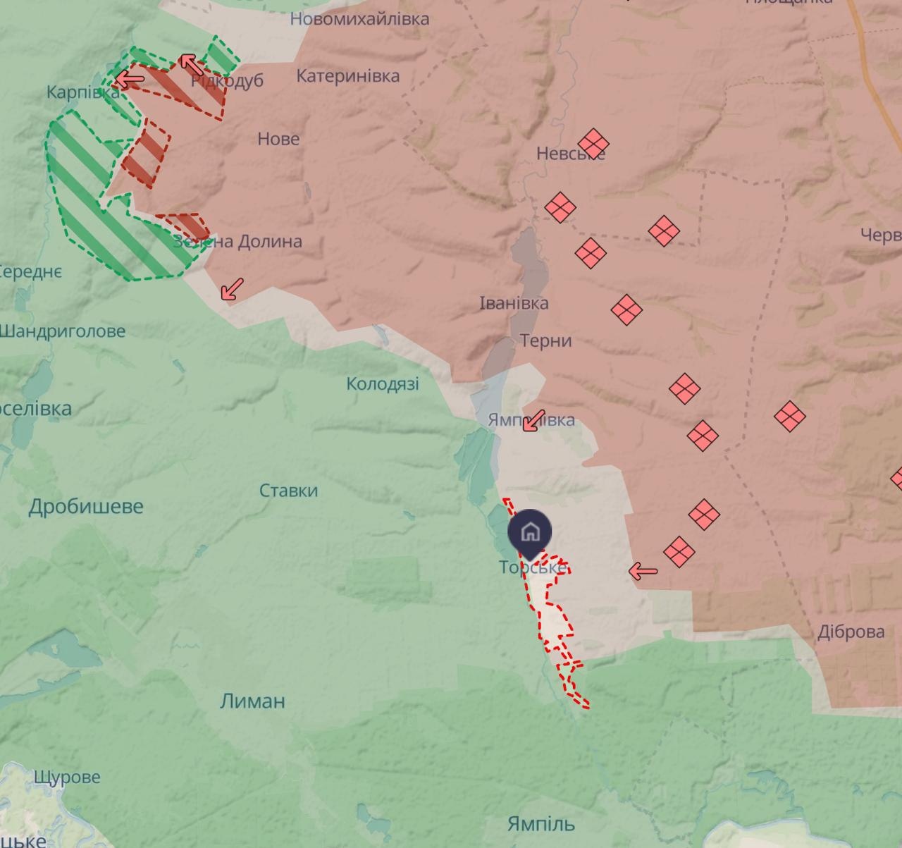 Ukrajinská armáda úplné obsadenie týchto dedín nepotvrdzuje, ale píše, že je na nich intenzívne útočené a Rusi tlačia na jednotky Ozbrojených síl Ukrajiny.