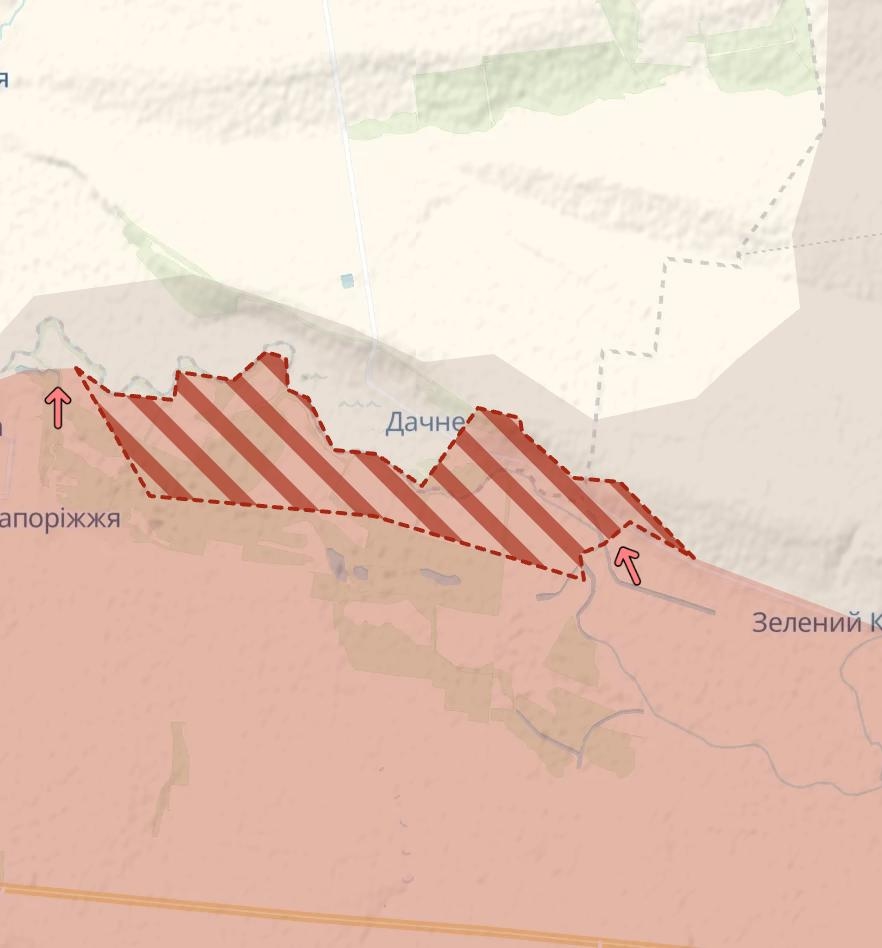 09:00 – Armáda Ruskej federácie prekročila rieku Volčja a upevnila svoju pozíciu na území Dnepropetrovskej oblasti v oblasti Dačnojo, ako svedčí mapa Deep State.