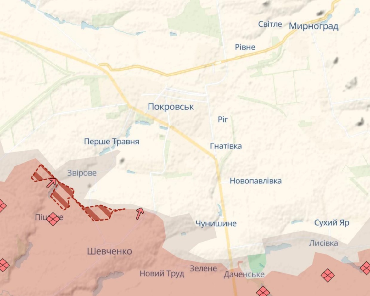 10:12 – Armáda Ruskej federácie postúpila pod Pokrovskom – v oblasti Zverevo, informuje Deep State.