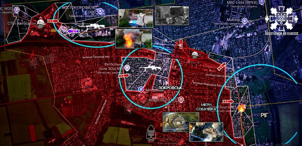 Podľa jeho slov prebiehajú v mikrorajóne Sobačevka vo východnej časti Pokrovska urputné boje o každý dvor. Rusi kontrolujú jeho väčšinu a „vyzerá to, že tento sektor je už na pokraji úplného odtrhnutia – je len otázkou času, kedy sa nepriateľ definitívne upevní“.