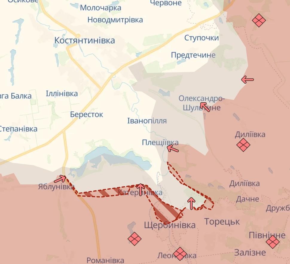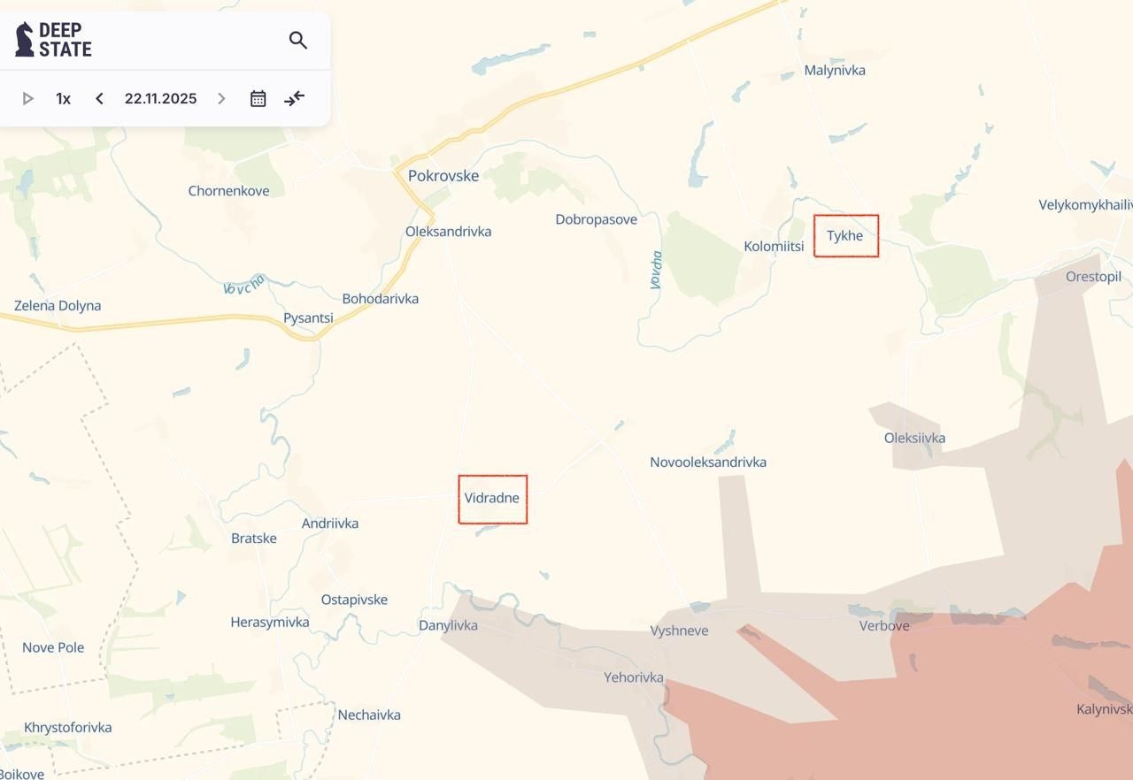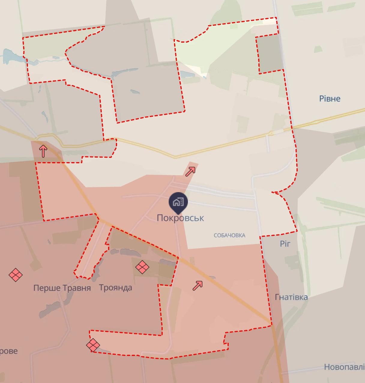 Podľa jeho informácií ruské vojská obsadili polovicu priemyselnej zóny bane „Pokrovskaja“ a snažia sa preniknúť ďalej na sever. V Mirnograde a Pokrovsku sú tiež problémy s logistikou, ktorá prebieha výlučne v „sivej zóne“, píše „Mučnoj“ (na mape Deep State je ešte koridor kontrolovaný ukrajinskými ozbrojenými silami, ale je to veľmi úzky pás).