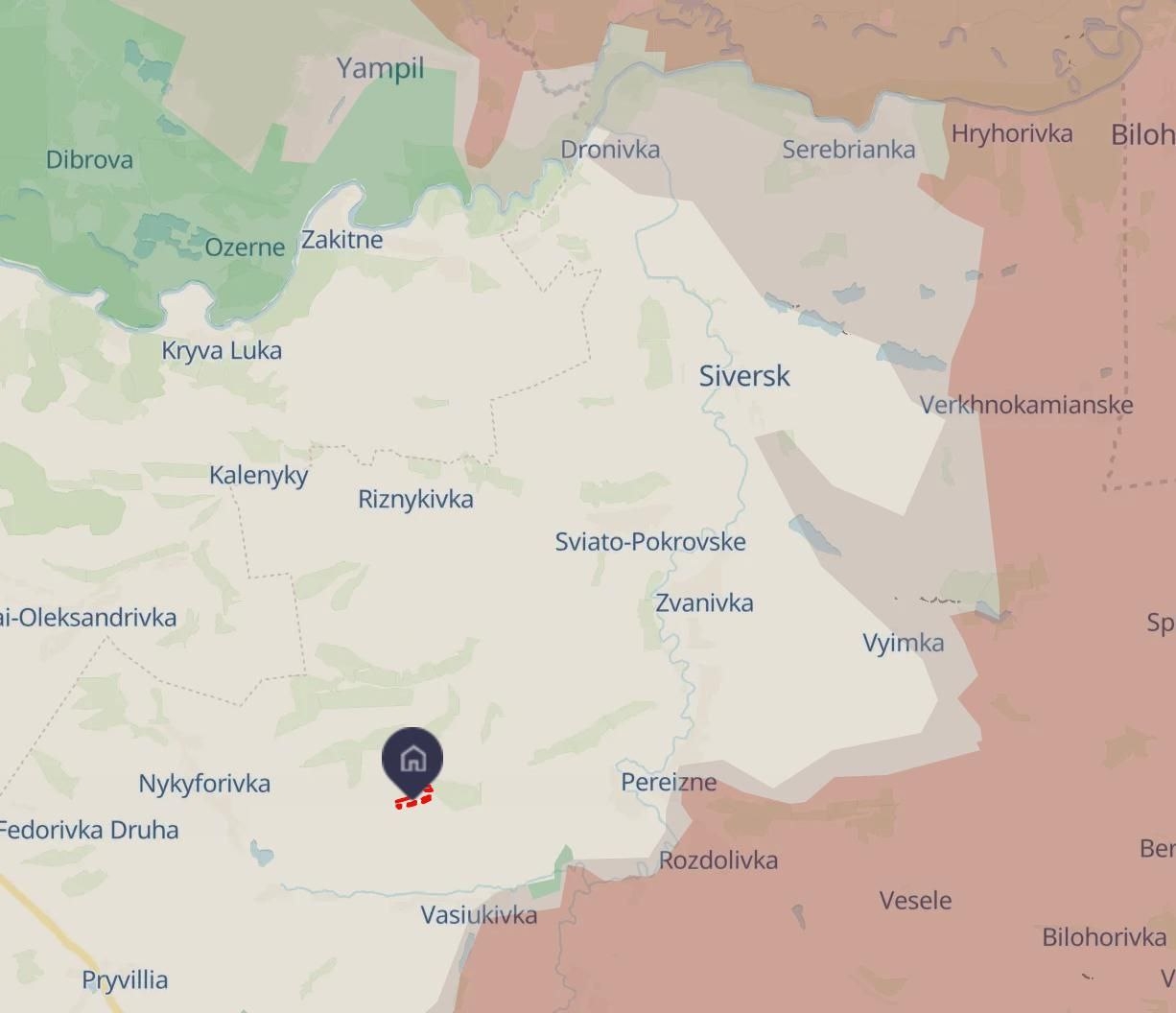 Ruský minister obrany tiež píše o obsadení dediny Pazeno v smere na Seversk (mapa 2). Potenciálne to vytvára hrozbu hlbokého obsadenia oblasti Seversk (pripomeňme, že do samotného Seversku už vstúpili ruské vojská). Kyjev však tento postup tiež nepotvrdil.