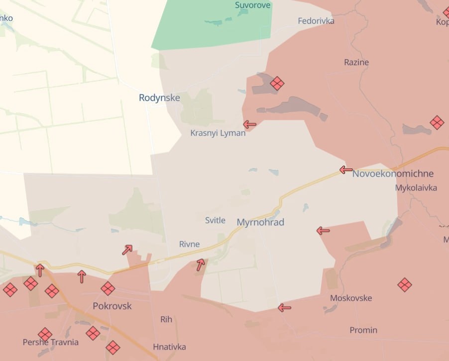 07:25 – Podľa aktualizovanej mapy Deep State zmizla z Mirnogradu zóna kontroly ukrajinských ozbrojených síl. Teraz je celé mesto buď v šedej zóne, alebo pod kontrolou Ruskej federácie.