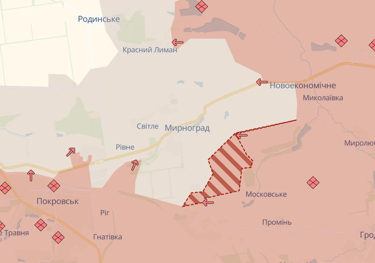 RF tiež postúpila v Myrnohrade, ktorý sa celý nachádza v šedej zóne, a vo Volčansku.