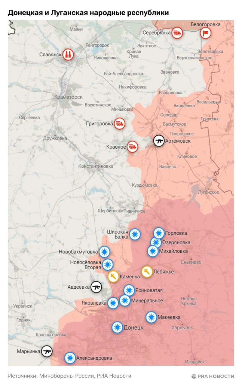 13:23 – Útočné skupiny za 24 hodín dobyli dva bloky Artemovska v Doneckej ľudovej republike a pokračujú v ničení nepriateľa v západnej časti mesta, uviedlo ruské ministerstvo obrany.