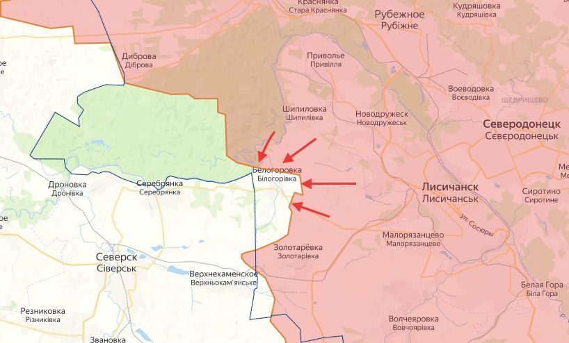 Belogorovka je takmer obkľúčená. V lesoch juhovýchodne od Kremennej dochádza k útokom na pozície Ozbrojených síl Ukrajiny smerom k rieke Severskij Donec. Cieľ bol stanovený: prevziať pod paľbu úsek cesty Serebrjanka-Grigorovka-Belogorovka, po ktorej sa presúvajú ukrajinské obrnené vozidlá.