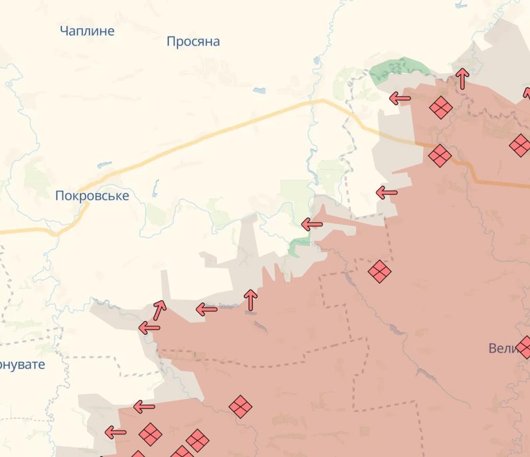 11:40 – Armáda Ruskej federácie postúpila na západ od Mirnogradu a južne od Severska, informuje Deep State.