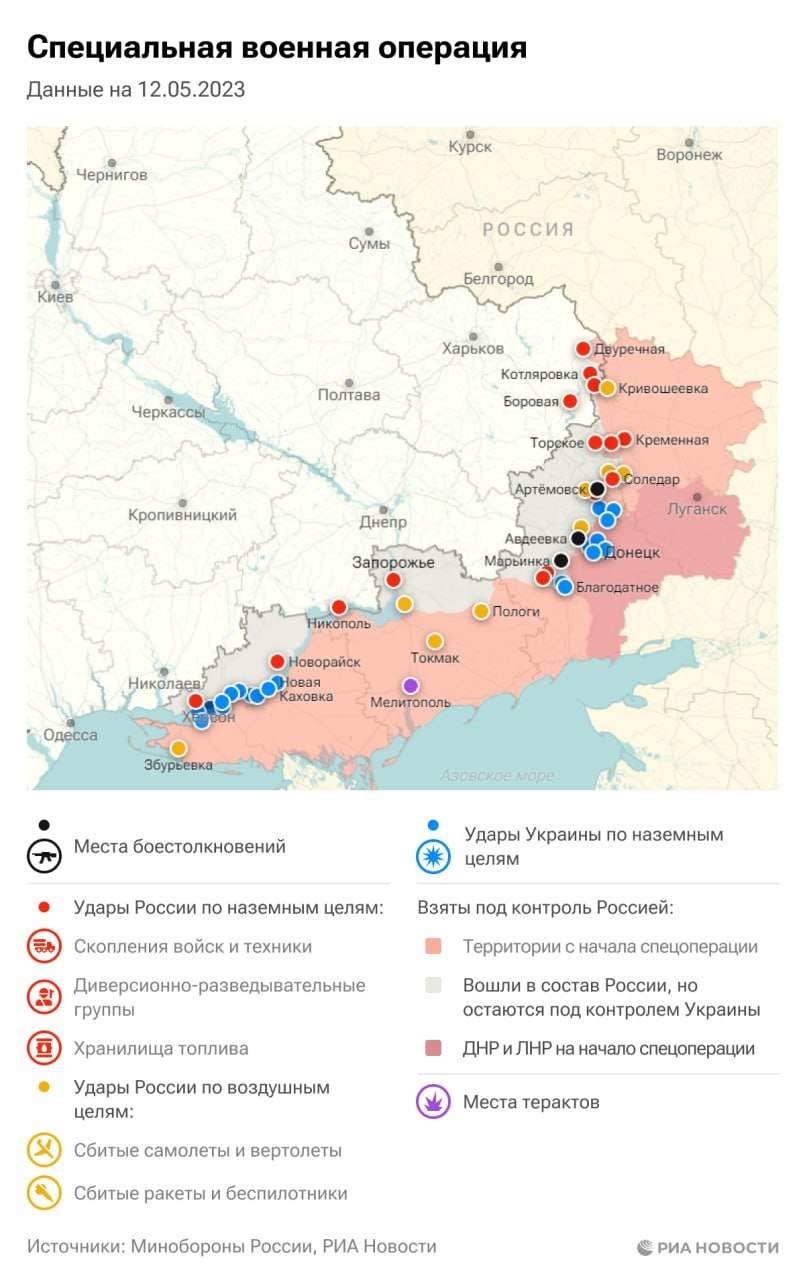 Podotýkame, že informácia o postupe o dva kilometre sa objavila 9. mája, oznámil ju Wagner a následne ju potvrdili jednotliví velitelia ukrajinských ozbrojených síl.