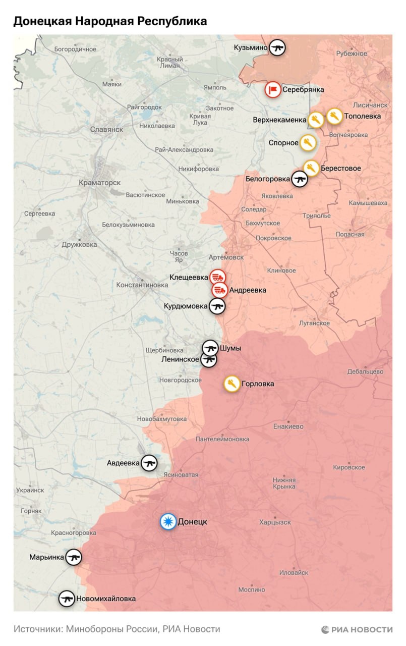 – Ruské ozbrojené sily odrazili štyri útoky útočných skupín AFU pri Novomichajlovke v Doneckej oblasti, nepriateľ stratil do 90 vojakov;