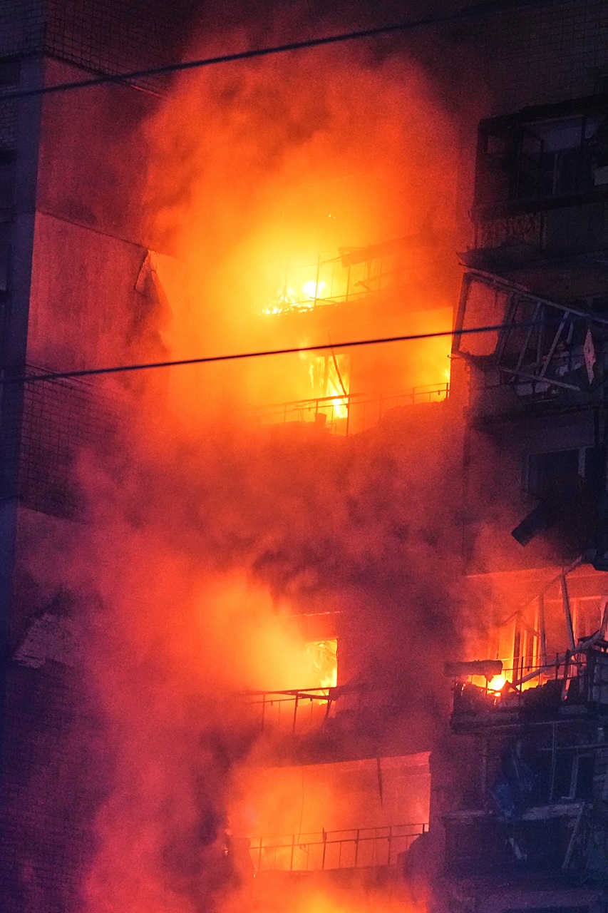 Na snímke obytná budova po zásahu rakety ruskej armády vo Vyšhorode pri Kyjeve / Foto: TASR/AP-Efrem Lukatsky