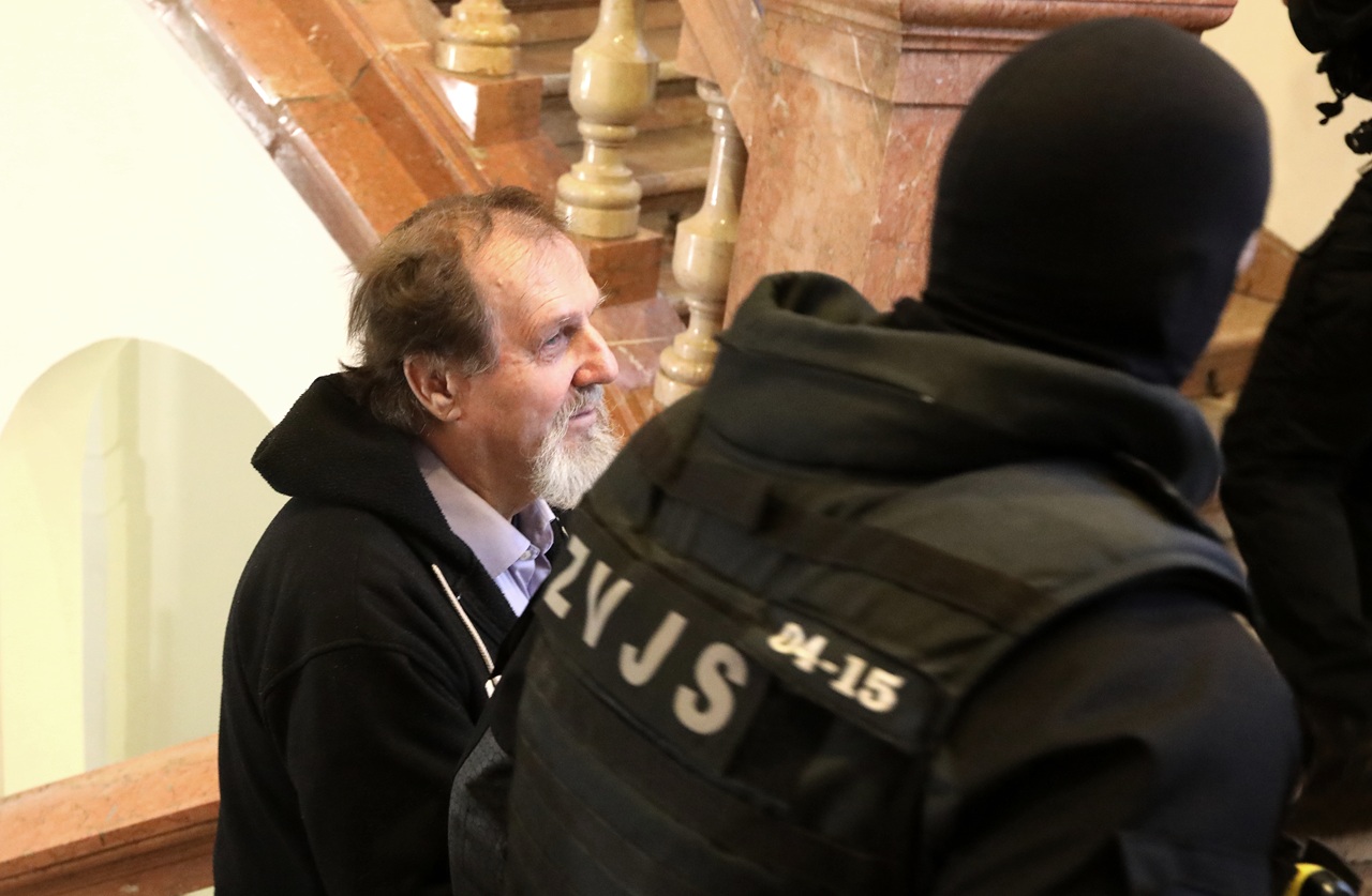 Na snímke Juraj Cintula, obžalovaný pre obzvlášť závažný zločin teroristického útoku spáchaného na chránenej osobe, prichádza na Špecializovaný trestný súd (ŠTS) v Banskej Bystrici / Foto: TASR – Ján Krošlák