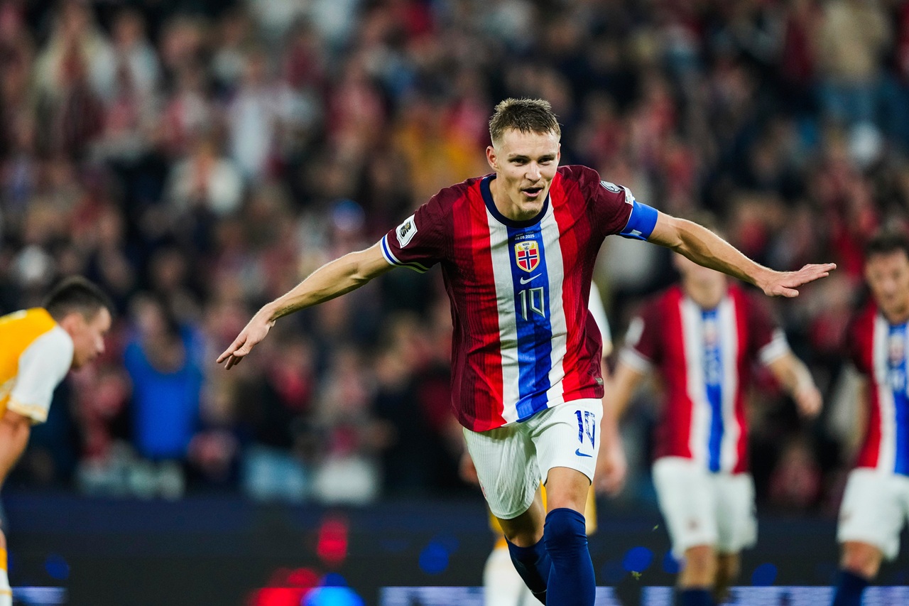 Na snímke Martin Ödegaard z Nórska sa teší z gólu v zápase I-skupiny európskej kvalifikácie MS2026 vo futbale Nórsko – Moldavsko v nórskej metropole Oslo / Foto: TASR/AP-Cornelius Poppe/NTB via AP