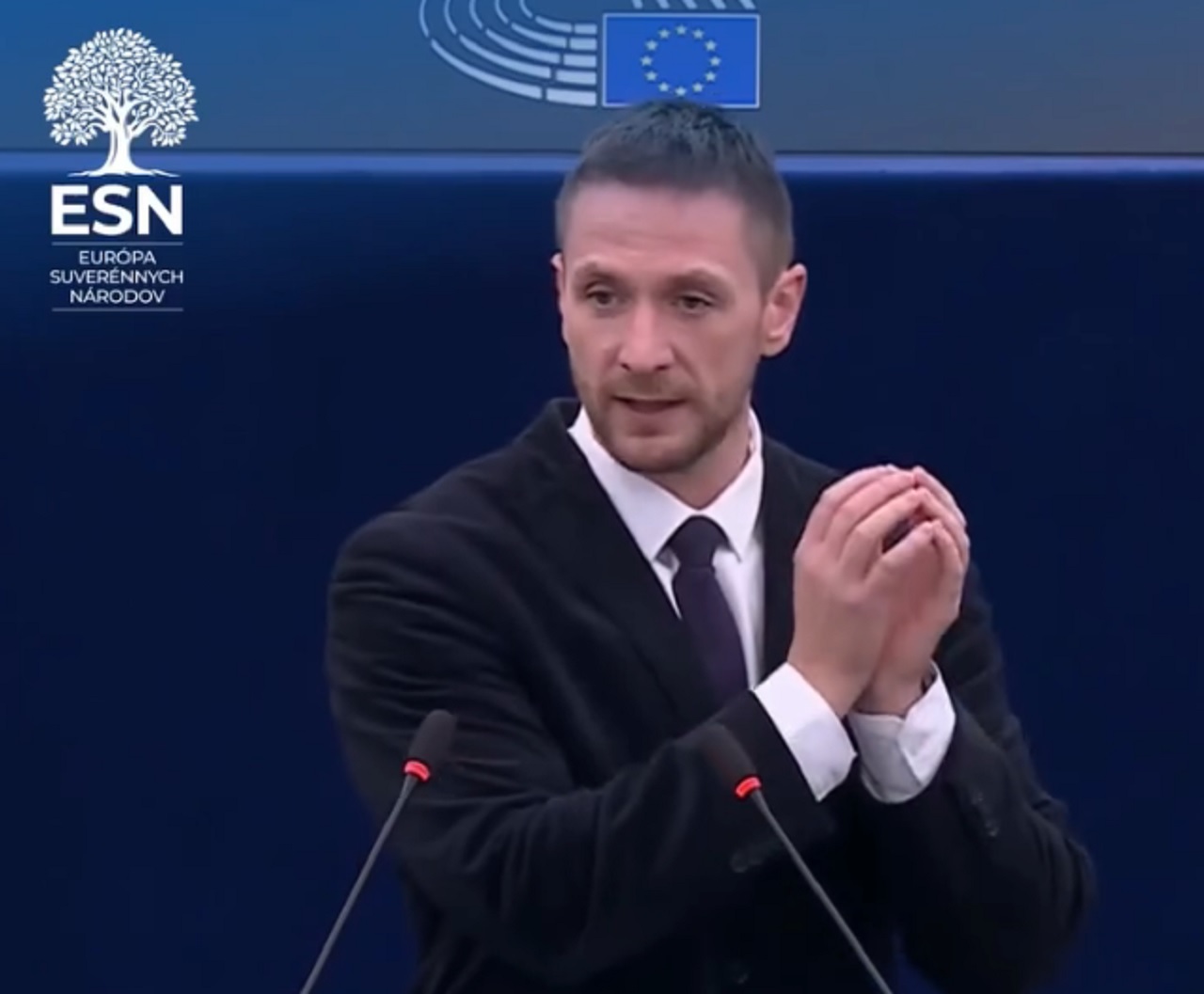Na snímke europoslanec Milan Uhrík (hnutie Republika, v EP frakcia ESN) / Foto: Screenshot Facebook