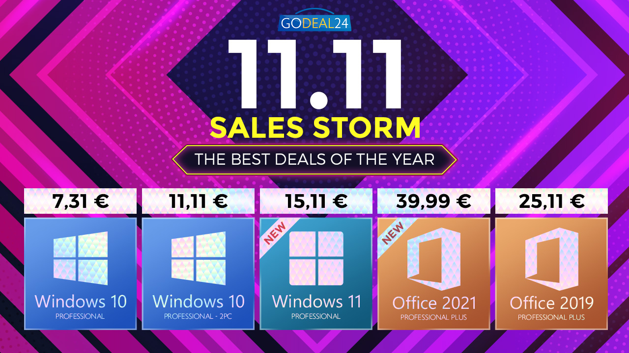 Práve teraz Godeal24 spustil Double 11 Crazy Promotion ktorý vám prináša zľavy, ktoré si nemôžete nechať ujsť. Nižšie nájdete tie najlepšie ponuky, ktoré môžete využiť! V rámci Výpredaja 11.11. získate najnižšie ceny na webe za originálny Windows 10 Pro, Office 2019 Professional Plus a Office 20121 Pro plus doživotne platné licencie. Windows 10 Pro je možné mať už za 5,57 USD za jeden počíta