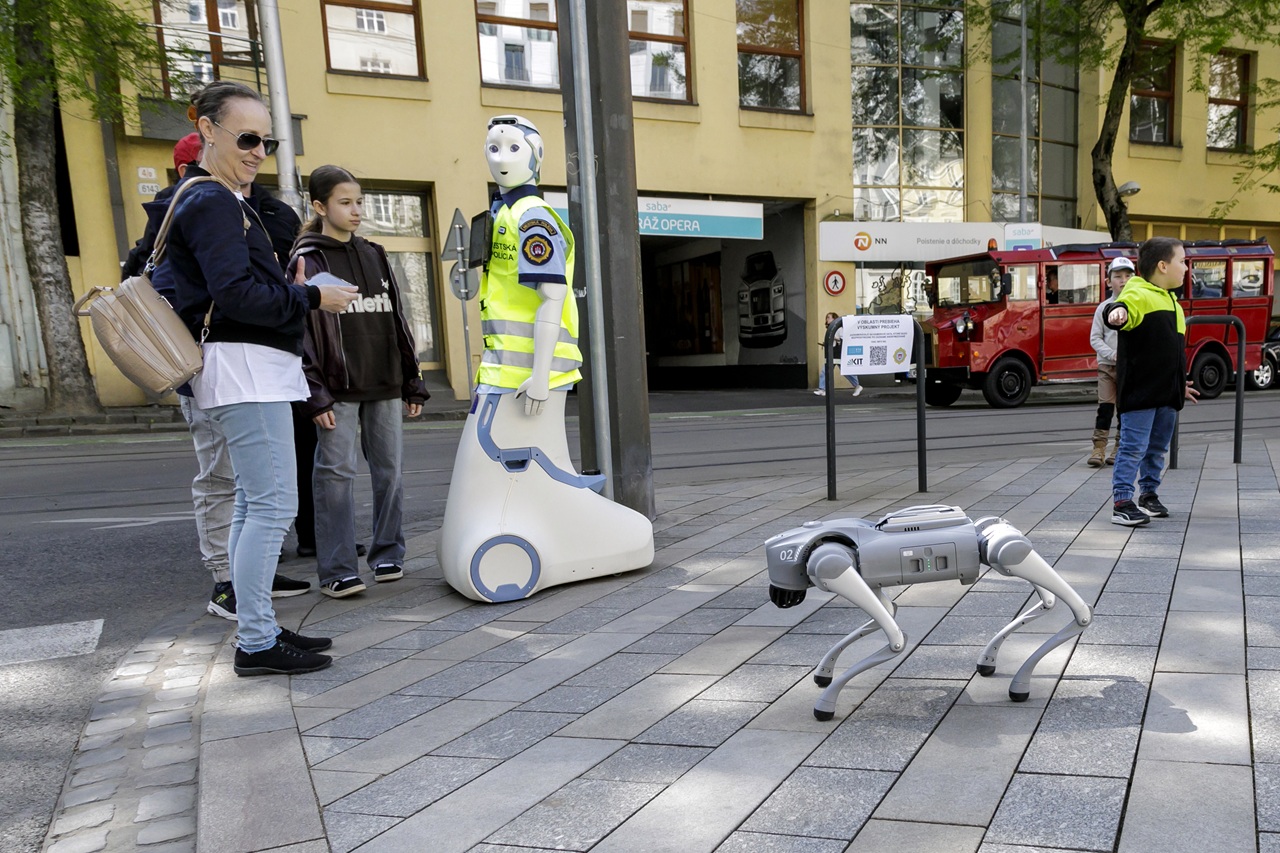 Výskumníci v sobotu na Komenského námestí v Bratislave testovali robota na riadenie dopravy / Foto: TASR-Dano Veselský