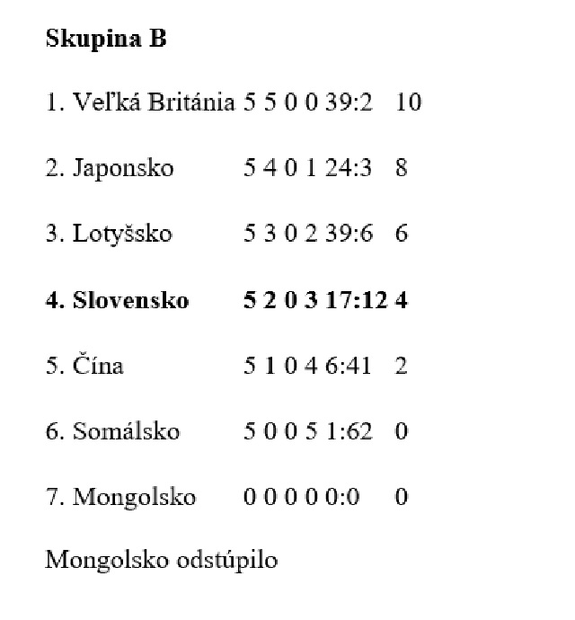 Play off: Estónsko – Japonsko 12:1, Veľká Británia – Maďarsko 5:4