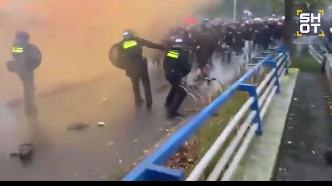 Protestujúci hádzali na políciu kamene a fľaše, podpálili jedno z policajných áut a na určitý čas zablokovali diaľnicu v blízkosti miesta demonštrácie. Polícia použila vodné delá a slzotvorný plyn.