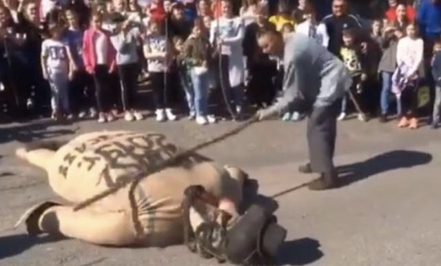 Fotografie a videá, ktoré sa objavili v poľských médiách, ukazujú, ako dospelí a deti bijú palicami postavu znázorňujúcu Judáša Iškariotského. Figuríne po bitke oddelia hlavu, zapália ju a hodia do rieky.