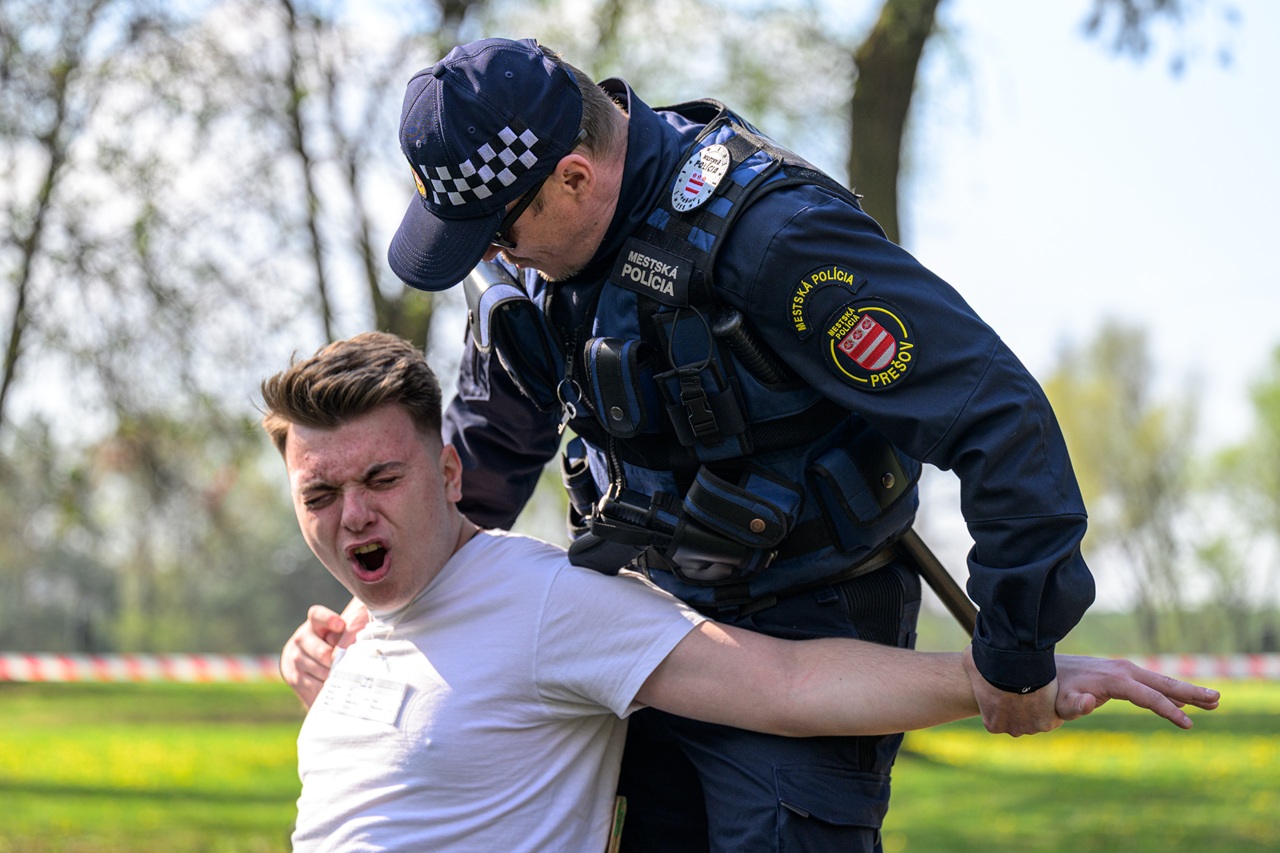Na snímke mestský policajt zasahuje počas realistického taktického cvičenia / Foto: TASR-Veronika Mihaliková
