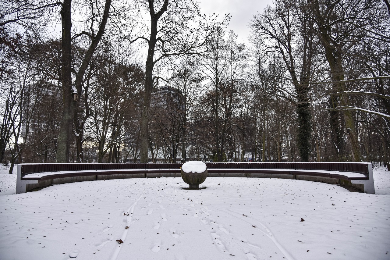 Na snímke zasnežené lavičky v Sade Janka Kráľa v bratislavskej Petržalke