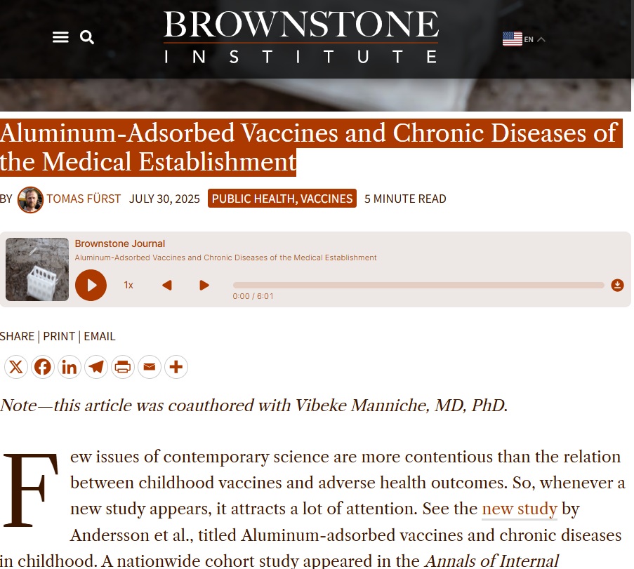 Dánská studie Andersson et al., nazvaná „Aluminum-adsorbed vaccines and chronic diseases in childhood.“, která vyšla v půlce července v časopise Annals of Internal Medicine vyvolala značný rozruch. Nejprve o ní referovala veřejnoprávní média