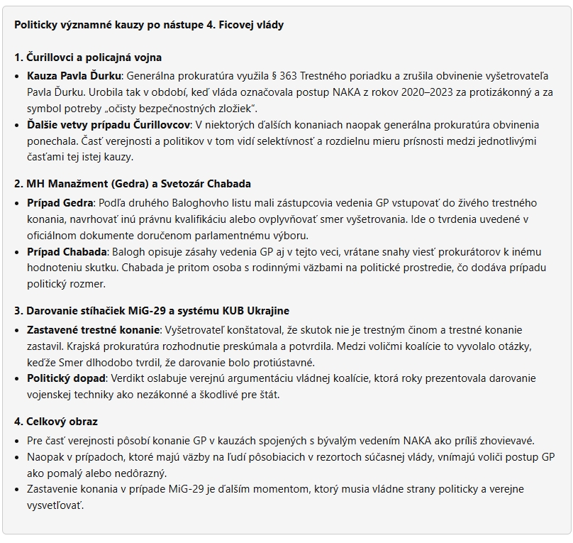 Práve tieto rozhodnutia posilňujú medzi koaličnými voličmi aj politikmi pocit, že generálny prokurátor nekoná konzistentne a jeho výklad zákona sa v citlivých kauzách líši. Zatiaľ čo v niektorých prípadoch používa paragraf 363 rázne, v iných postupuje pomaly alebo vôbec.