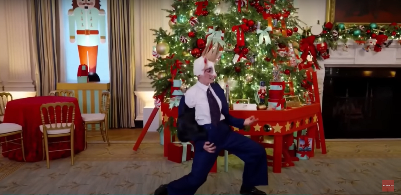 Video, ktoré Bidenová zverejnila v stredu, ukazuje členov newyorského tanečného súboru Dorrance Dancers, ako stepujú na interpretáciu suity z baletu Luskáčik po chodbách Bieleho domu. Skupina sa nachádza v sále s cukrovinkovou výzdobou, ktorá vedie k hlavnému vianočnému stromčeku v Modrej miestnosti, kde sa od roku 1961 zvyčajne umiestňuje hlavný stromček. Tanečníci predvádzajú, ako boli jednotlivé miestnosti vyzdobené na oslavy.