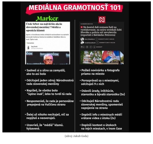 Do kauzy sa napokon zamontovali aj samozvaní lovci dezinformácií, tí naši, z Hornej zeme. Bývalý poradca slovutnej pani prezidentky údajne najlepšie ilustroval rozdiel medzi naratívom o klamstve opozície a médií, ktorý bol prezentovaný na internete. Ako „komunikačný expert” pritom urobil zásadnú chybu, keď porovnával spomínaný komentár obsahujúci hodnotiace úsudky so spravodajskými článkami Denníka N. Tie sa pritom odvolávali na jednostranne zamerané citácie miestnych obyvateľov a rozhovory s funkcionármi úradov slovenskej menšiny. Ani tento zastierací manéver však nezabránil tomu, aby sa napokon ukázalo, že údajný útok Srbov na slovenský menšinu je obyčajný mediálny podvrh. Koniec koncov, vyplýva to aj z viacerých textov, ktoré postupne zverejnil Denník N. Dokonca publikoval texty, z ktorých vyplynulo, že vláda sa o svoju menšinu, žijúcu stovky kilometrov od domoviny, príkladne stará.